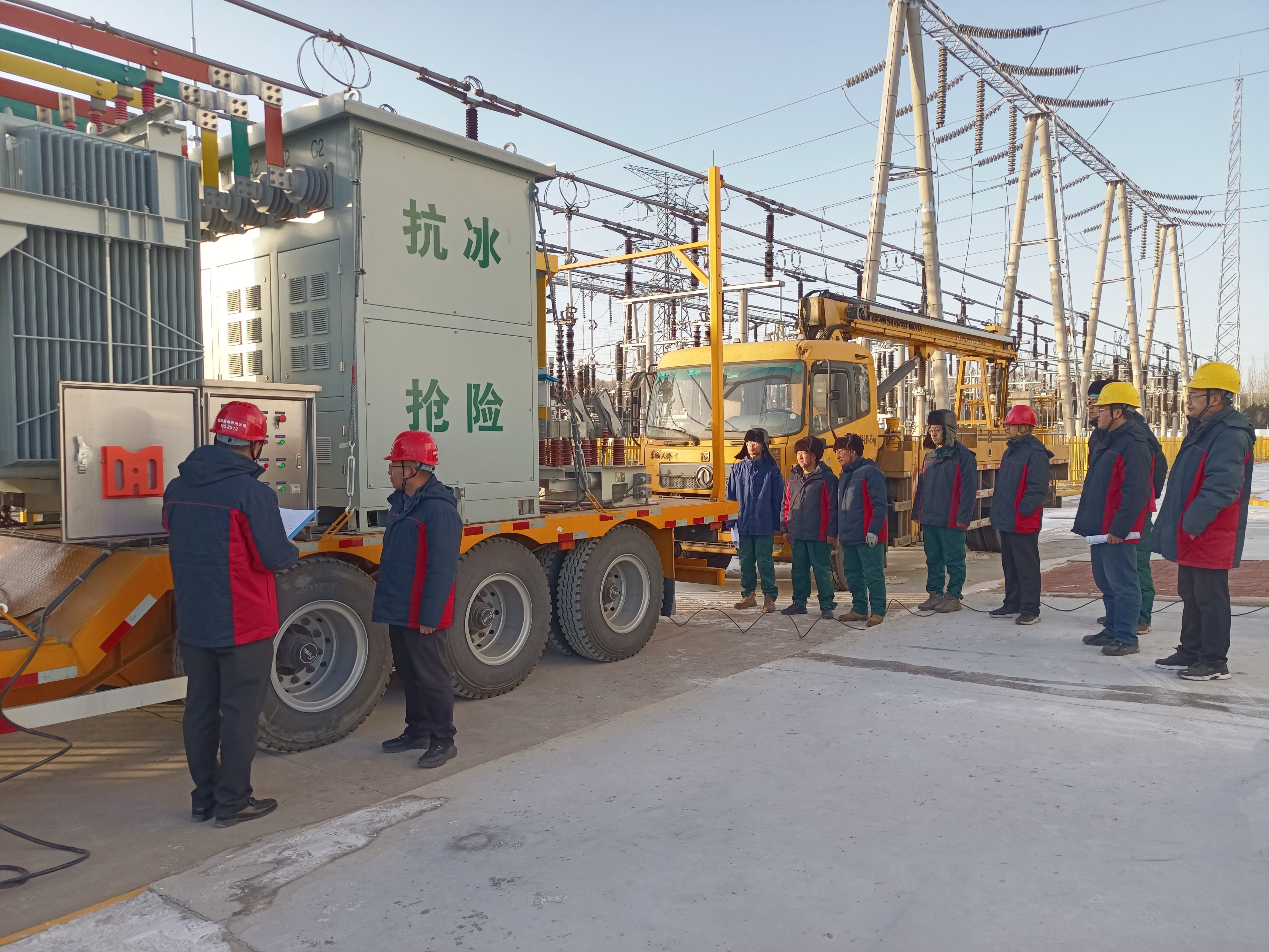 為積極應(yīng)對冬季寒潮天氣,保障電網(wǎng)安全穩(wěn)定運行,11月27日,朔州供電公司在220千伏向陽堡變電站組織開展220千伏朔向I線移動式直流融冰實操演練。本次演練集結(jié)了調(diào)度、運行、檢修、二次、輸電等各專業(yè)骨干力量共計20余人,旨在全面檢驗融冰方案的可行性與各專業(yè)隊伍的協(xié)同作戰(zhàn)能力,為冬季線路防冰抗冰工作打下堅實基礎(chǔ)。