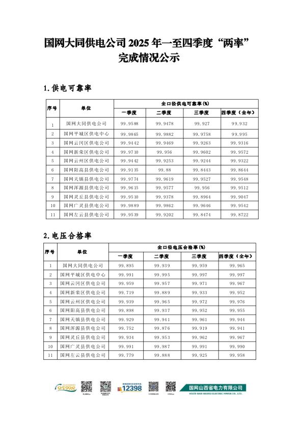 國網大同供電公司2025年四季度“兩率”完成情況